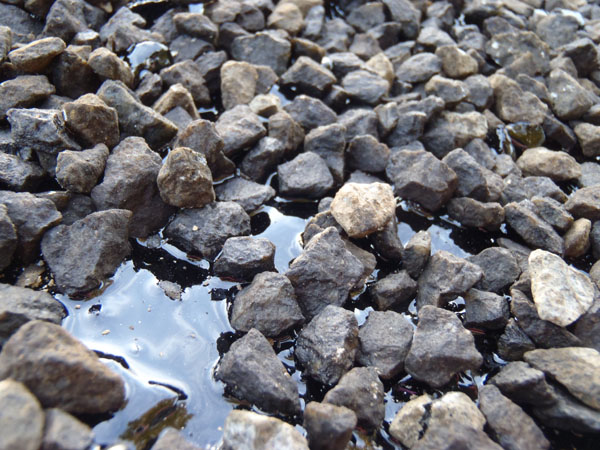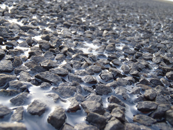 But the one thing that made my walk home interesting, is the gravel . . . well, apart from it flinging up into my face every time a car passed by. That sticky black stuff they cover in gravel looks like a liquid, it looks as though if you were to dip your finger into it I’d stick in so much you’d be lucky to see it again. Yet when you touch this sticky black stuff you find that it’s solid . . . and I find that a rather weird illusion.