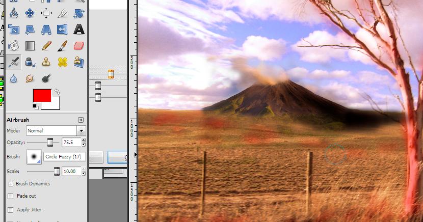 Now there’s a volcano in the field behind it, as you can see the tree still seems to be the focus of the picture, despite the volcano in the background.
